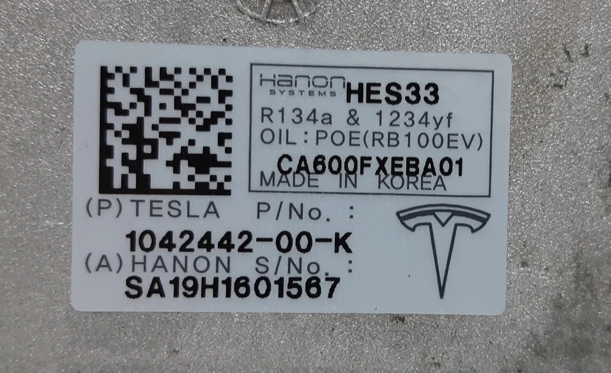Kontrol af en Tesla klimakompressor før køb og installation involverer visuel inspektion af huset og kontakter. Der må ikke være spor af olie eller oxidation på kontakterne. Revner og dryp er ikke tilladt på kroppen. Hvis Tesla-modellen X 1042442-00-K klimakompressoren svigter, kan den kun repareres på et specialiseret værksted.¶Hvis airconditionkompressoren svigter, er det mere rationelt at købe en brugt reservedel med garanti for ydeevne. Selvreparation af en kompressor uden specielle anordninger til udpumpning af gas og olie er umulig. Prisen på en brugt Tesla kompressor 1042442-00-K afhænger af dens stand, men er væsentligt lavere end en ny.